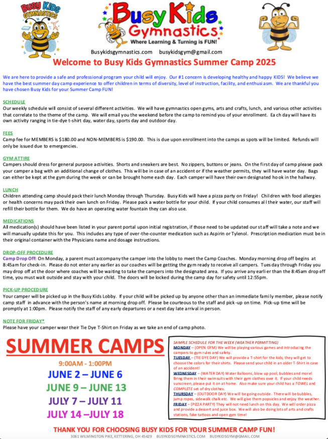 To receive member pricing you must have been enrolled in the 2024-2025 School Year and paid registration fees. All registrations will be checked before camps and prices will be adjusted.